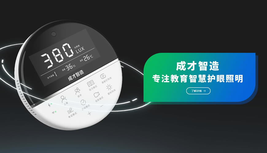 深圳成才照明科技有限公司是一家集研發、設計、生產、銷售于一體的企業,致力于教育照明智控系統、智慧校園管理方案、照明產品的研發和生產。 成才照明在充分總結在校園智能照明領域多年來的應用經驗,自主研發出的教育照明智控系統,獲得幾十種智能軟件著作權,智控屏獲得實用專利和外觀專利認證,為國內第一款教室照明智控屏;公司的教育照明產品通過CCC認證、節能認證、兒童青少年學習用品近視防控衛生要求認證等,并通過多項國家標準及國際標準檢測(檢測公司具備CMA、CNAS、ilac-MRA等認證資質);公司黑板燈教室燈通過